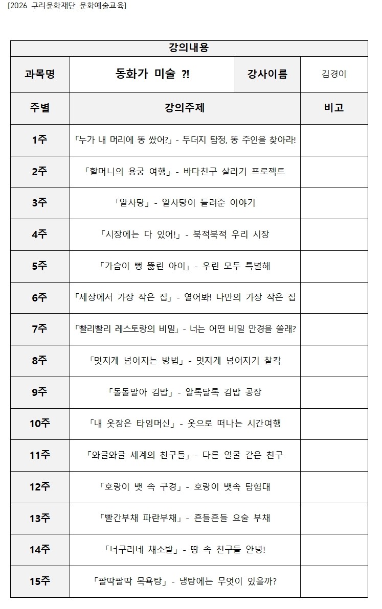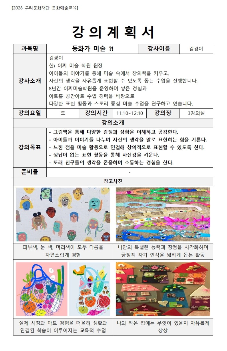 구리문화재단 및 기획프로그램 (공연, 전시, 예술아카데미) 소식 제공