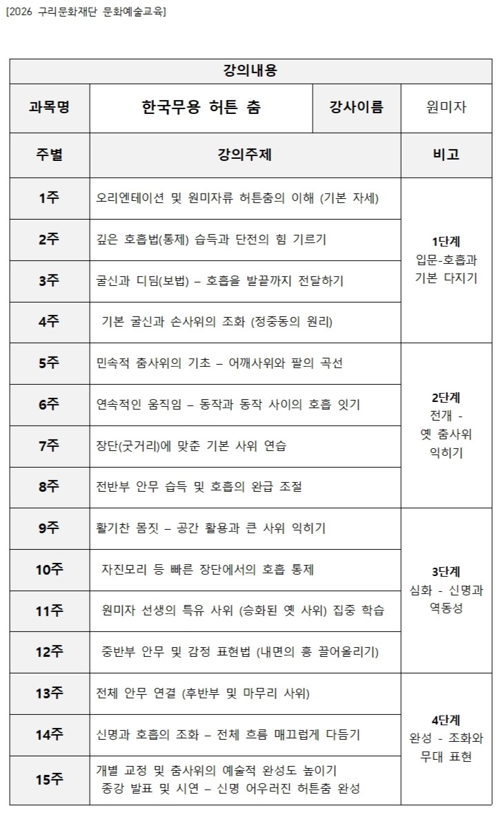 구리문화재단 및 기획프로그램 (공연, 전시, 예술아카데미) 소식 제공