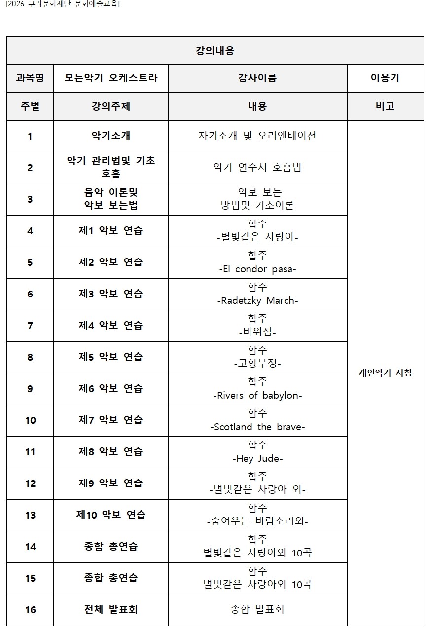 구리문화재단 및 기획프로그램 (공연, 전시, 예술아카데미) 소식 제공