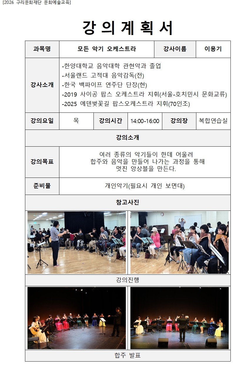 한양대학교 음악대학 졸업| 강사명 | 이용기 |