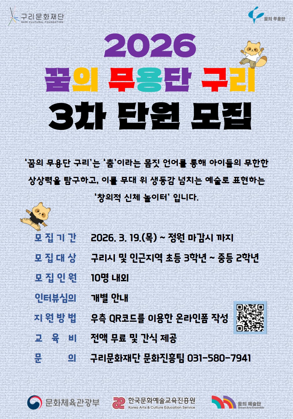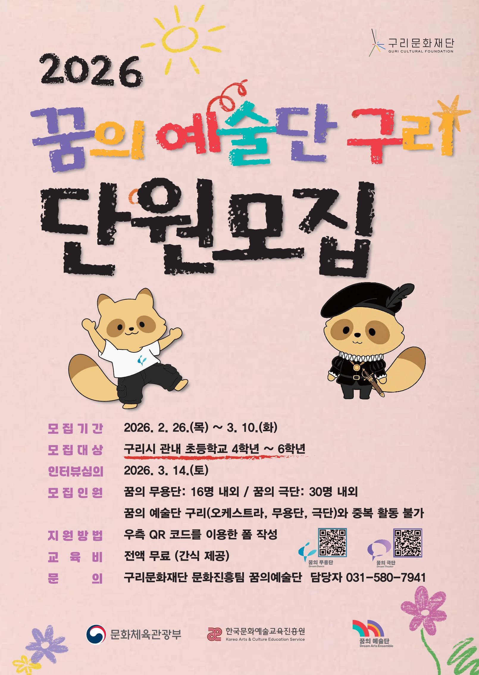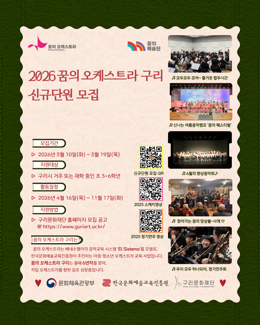 구리문화재단 및 기획프로그램 (공연, 전시, 예술아카데미) 소식 제공